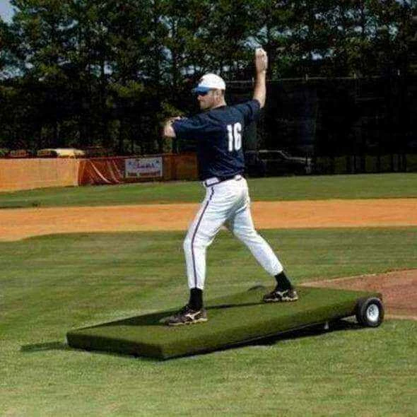 Batting practices are usually thrown from shorter distances than a regulation mound and it can be difficult to throw off of flat ground when you are not used to it. The Batting Practice Pitching Platform is a portable solution to this problem.