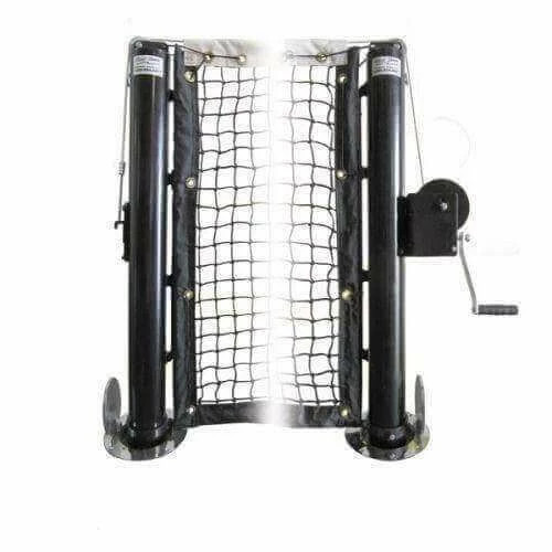 The unit is constructed of 3.5” OD heavy duty, ¼” thick high tensile aluminum. Aluminum construction makes these posts easy to remove and store, or reset for tennis if desired. The heavy duty worm gear driven winch is easy and safe to operate and has a quick detach removable crank handle. Sentry package systems include a heavy duty, pickleball net made from the same high quality components we use on our tennis nets. Choose from Sentry two system options: SENTRY PKPS includes standard PVC sleeves for post installation while SENTRY PKSO includes our exclusive sockets with hinged cover lids. These sockets are particularly useful on multipurpose courts where a smooth flush surface is desired when posts are removed.