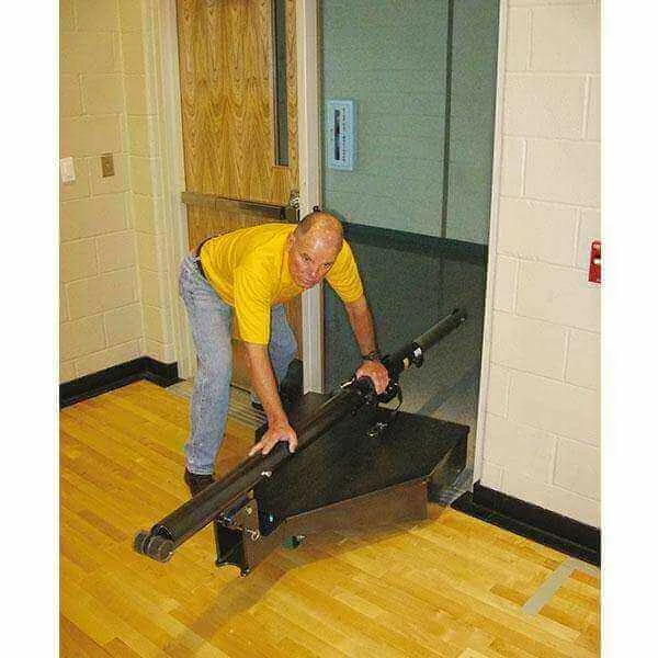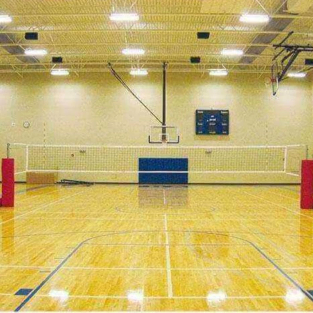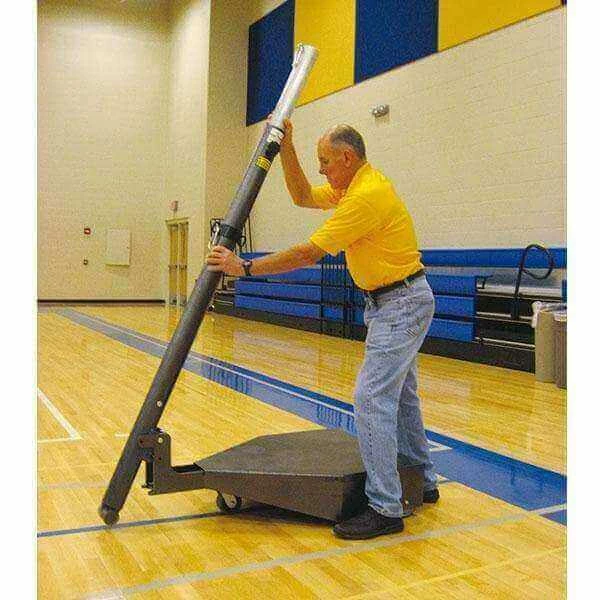 The Horizon’s base units can easily be rolled away into a storage room and folded flat for compact storage. Stand posts upright and secure with a locking pin for play. The built-in anti-skid floor protector engages the floor automatically when a post is lifted. The low profile base design allows for excellent visibility for spectators and line of sight for officials.