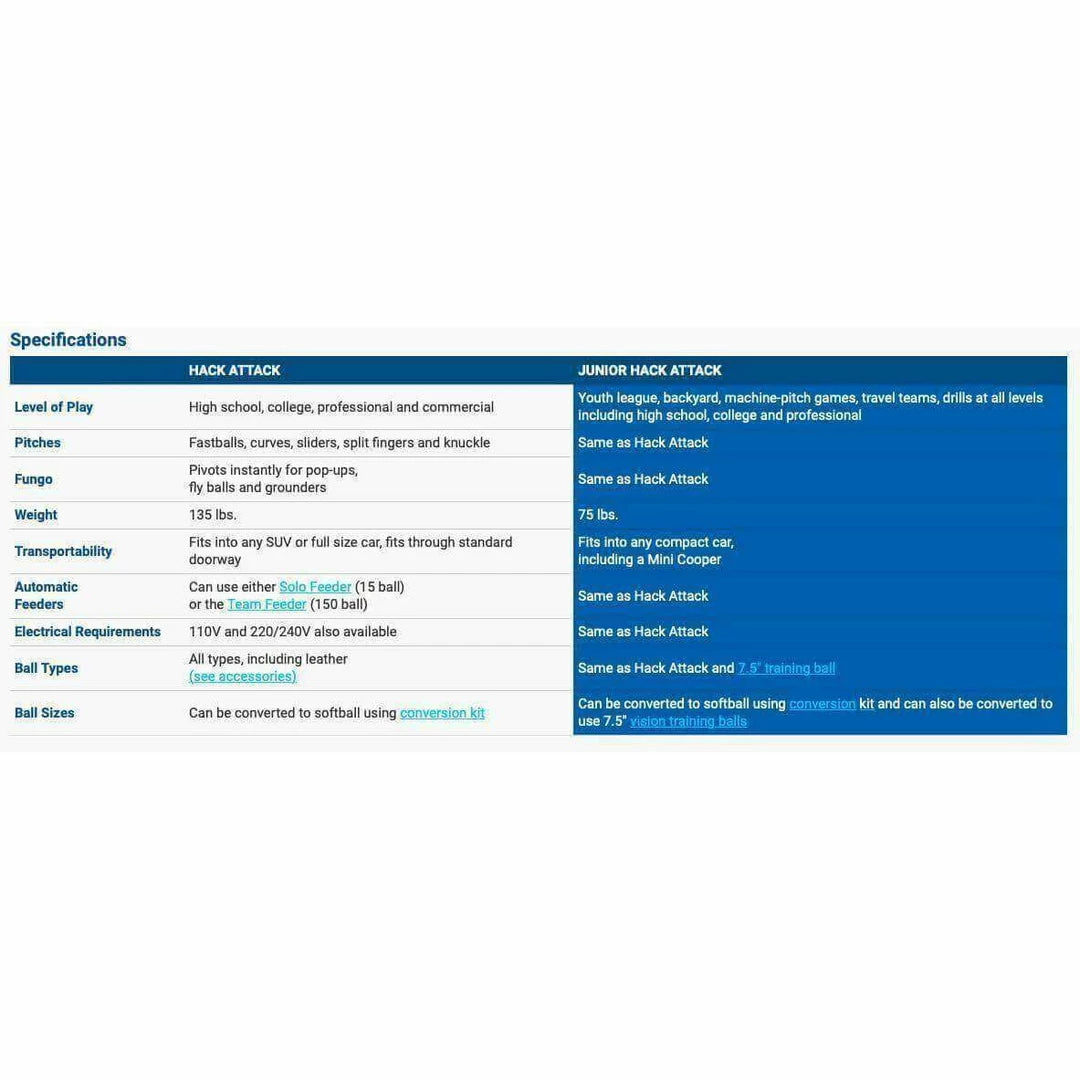 The Junior Hack Attack Baseball Pitching Machine is the major-league quality training tool designed to develop serious young players. The Junior Hack Attack has a unique three-wheel design that allows you to see the ball clearly and fully all the way through the feeding motion, acceleration and release, just like a live pitcher. In developing hitters, especially at younger ages, there is nothing more important than timing and vision.