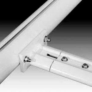 - Material: All-aluminum, 4″ round posts, bases, and crossbar, 4 3/8″ x 2″ back bottom bar (sits at 5’B)