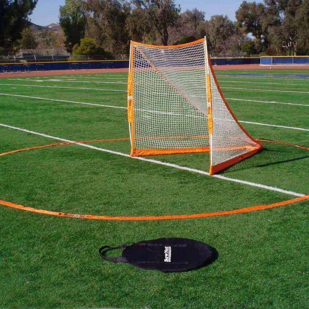 Get rid of the hassle of painting and measuring with Bownet’s 18′ Diameter Men’s Regulation Size Portable Lacrosse Crease.