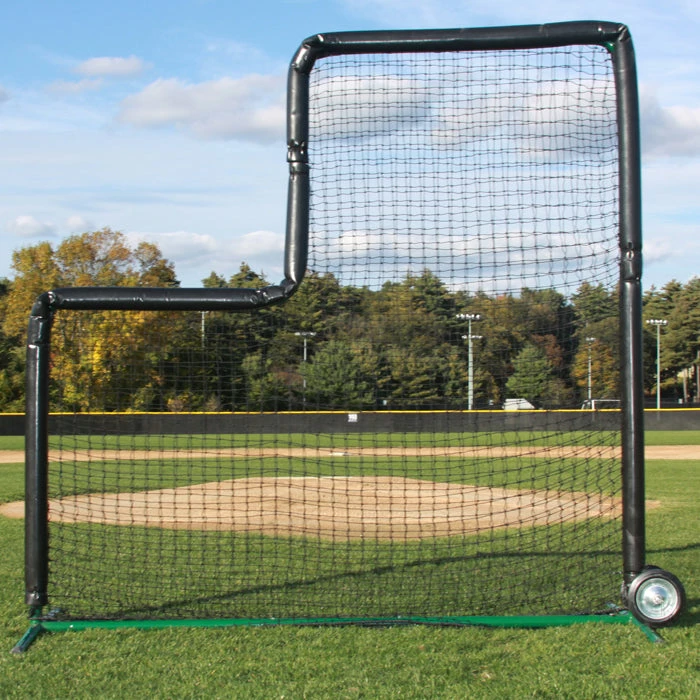 The L-Screen is a protective screen that can be moved to any location on your baseball or softball field, ensuring your coaches and athletes are safe during batting practice or pregame warm-ups. The Premium L-Screen has a 3′ x 3′ cutout on a 7′ x 7′ frame, which offers more pitcher protection than the traditional 3.5′ x 3.5′. These protective field screens are excellent for pitching and batting drill protection and will help make sure that your players remain safe. The Premium L-Screen will protect your pitcher during practice games, especially from dangerous line drives that go up the middle.