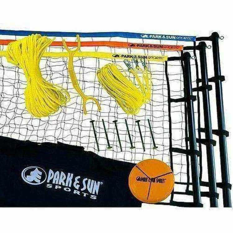 It goes without saying that playing 6 on 6 volleyball with one team of 6 is impossible (or at least really boring). ย We would all agree that playing with two teams of 6 (12 players if you don’t have a calculator) is how the sport was “intended to be played” and can provide hours of fun for all…but for Park and Sun, that just wasn’t good enough. ย One night (we can only assume it was night, because all the truly crazy ideas come at night), someone said “why not three teams?”… and Tri Ball was born.Adding two more nets, and allowing a third team into the action resulted in one of the most unique, challenging, and crazy team games ever invented.The Park & Sun Tri-Ball Recreational 3-Way Volleyball Set allows a 1/3 more players into the game, which adds more strategy and fun to this recreational volleyball(-ish) game. No more waiting to be “rotated in”, just divide the party into three teams and go. A truly unique way to play.ย Think about how much fun this could be. An entirely new way to think about the game. Up to 18 players all in on the action at the same time. You never know if the ball is coming your way, so be prepared. Set the ball up in the corner and get blockers from all three teams going up at the same time. If you get scored on, don’t worry…just “tri” again.Have something new set up at the next backyard party… give your friends something to talk about, and something they have likely never seen before.This set from Park & Sun includes everything you need to get a 3-way volleyball game going. All of the equipment fits neatly into the carrying bag – convenient when you’re on the go!