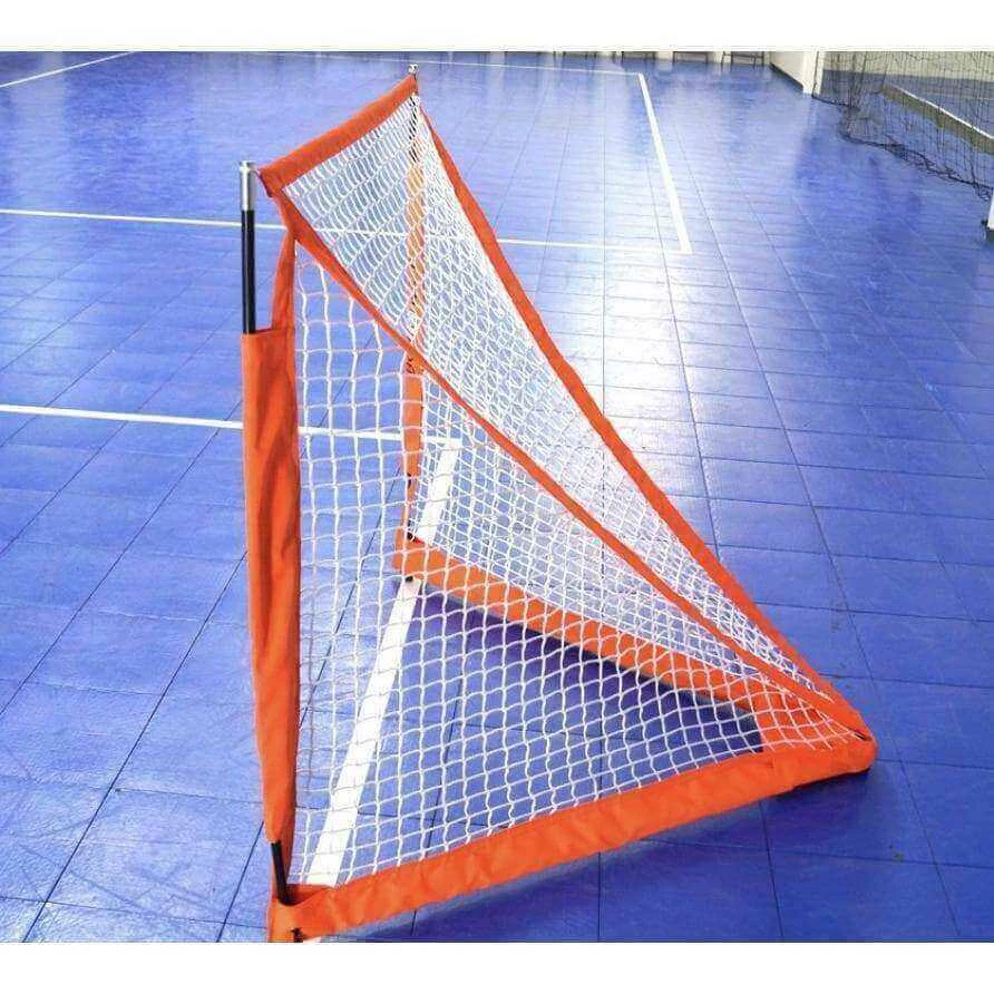 The lacrosse goal has rubber non-marking feet to help maintain stance and traction indoor and outdoor. It can be easily moved across a field. When the game is over, collapse the goal and place it into the provided manageable carrying bag for easy portability and storage. One year limited manufacturer warranty available.
