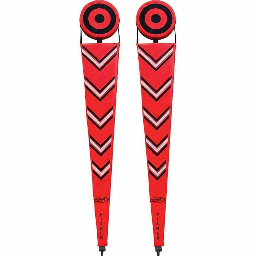 Fisher’s 8′ Pro Series chain set is feature rich with fully padded poles, pennants and bulls eyes and plated chains and swivel hooks. The poles are made of rugged galvanized steel with crutch tip ends to protect the field and players.