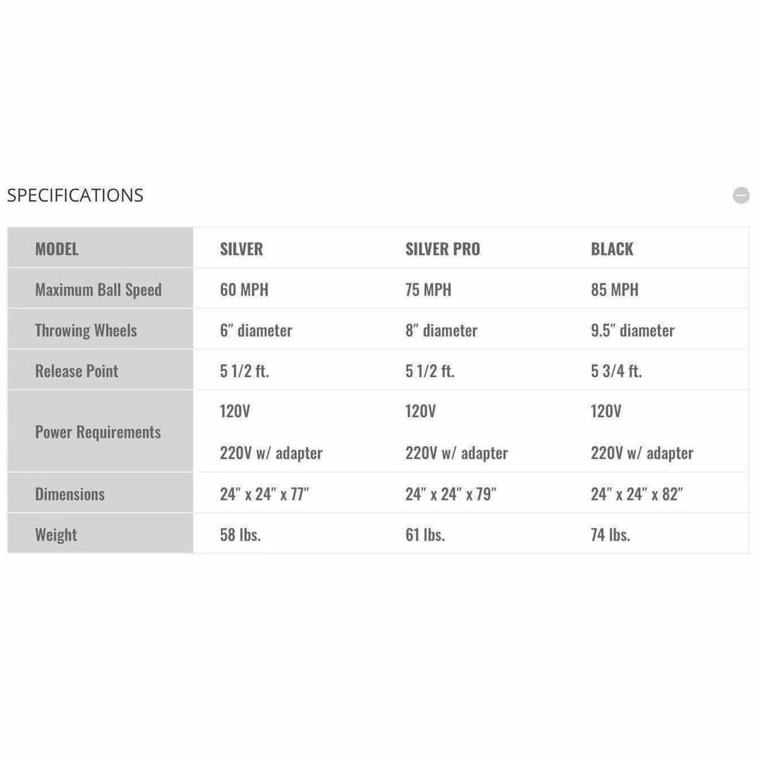 High Release Point – The Silver Model has a release point 5-1/2 feet high, which makes timing virtually the same as from a human setter. The high release point also allows for downward balls to practice digs.