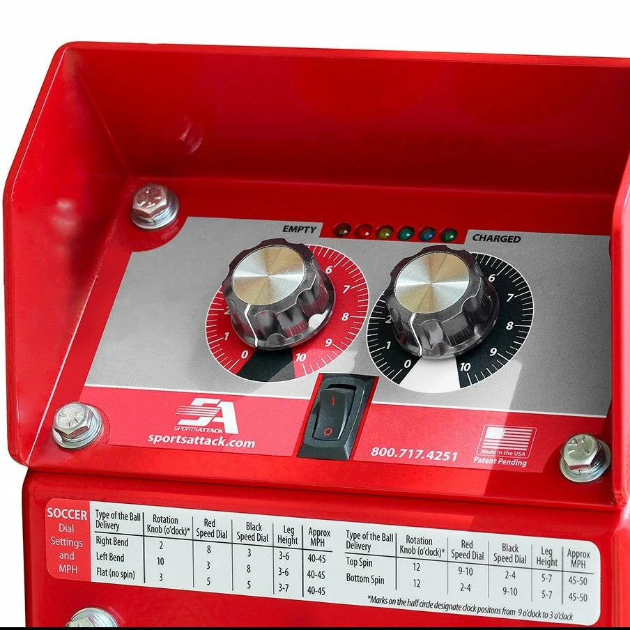 Machine provides reliable service on any soccer field or playing surface. The machine can deliver the ball at ground level or in the air at any height and can direct balls to be aimed in any direction from left to right. Balls can be delivered up to 75 MPH at a distance of 70 yards or more. The type of spin, height and direction desired can be locked into place to ensure precise repetition focused on your specific training objectives.