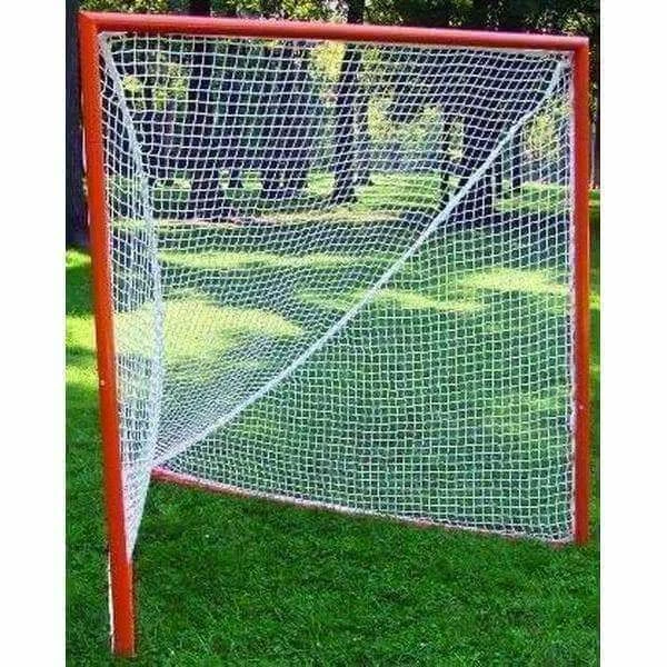Official size: 6’H x 6’W x 7’D. Meets all NCAA and high school specifications. Orange powder-coated frame for maximum protection. Uprights and crossbars feature 2″ HD galvanized steel. Goals features one-piece welded face, mitered corners and lacing rail. 3/8″ thick flat steel ground bar keeps goal extremely stable. Each goal includes HD 7mm nets and lacing cord. Sold as pairs.