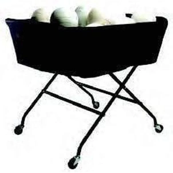 Heavy-duty basket is HD black nylon & includes side pockets for storage. Powder coated steel frame with swivel casters. Holds 40 balls.